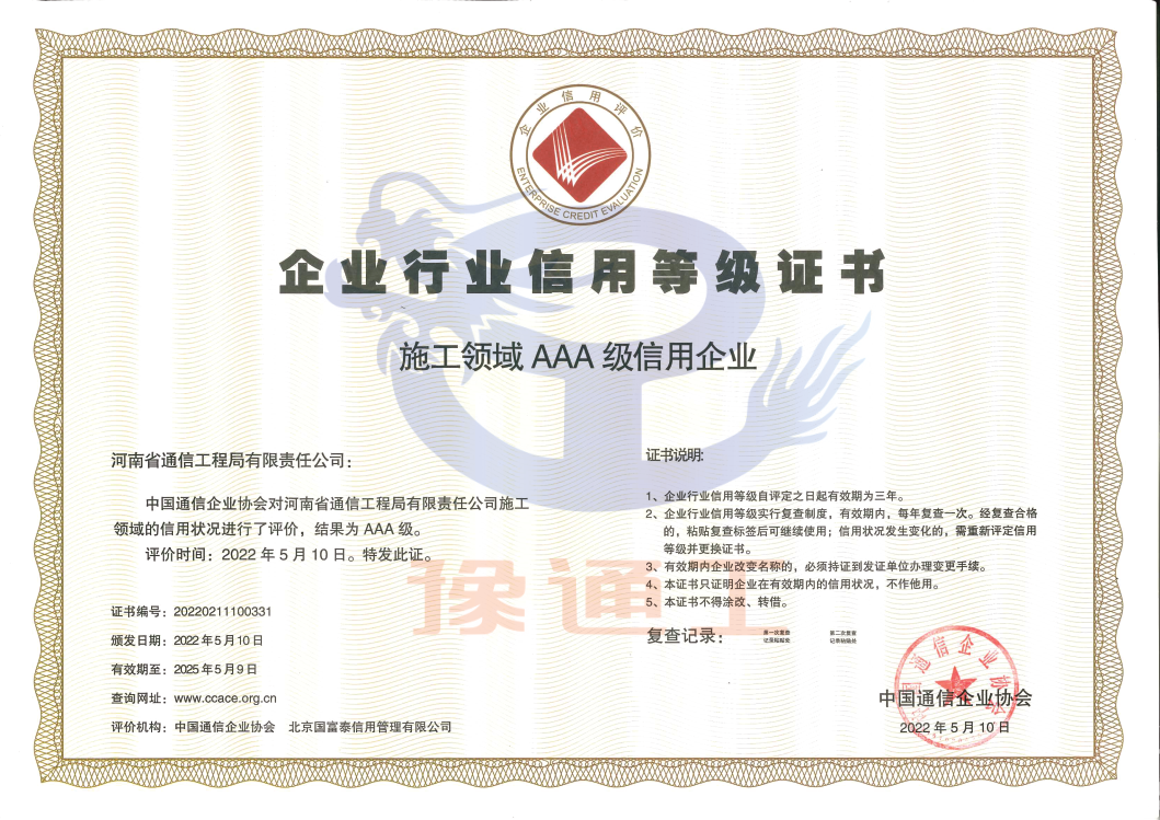通信施工領(lǐng)域信用企業(yè)AAA級
