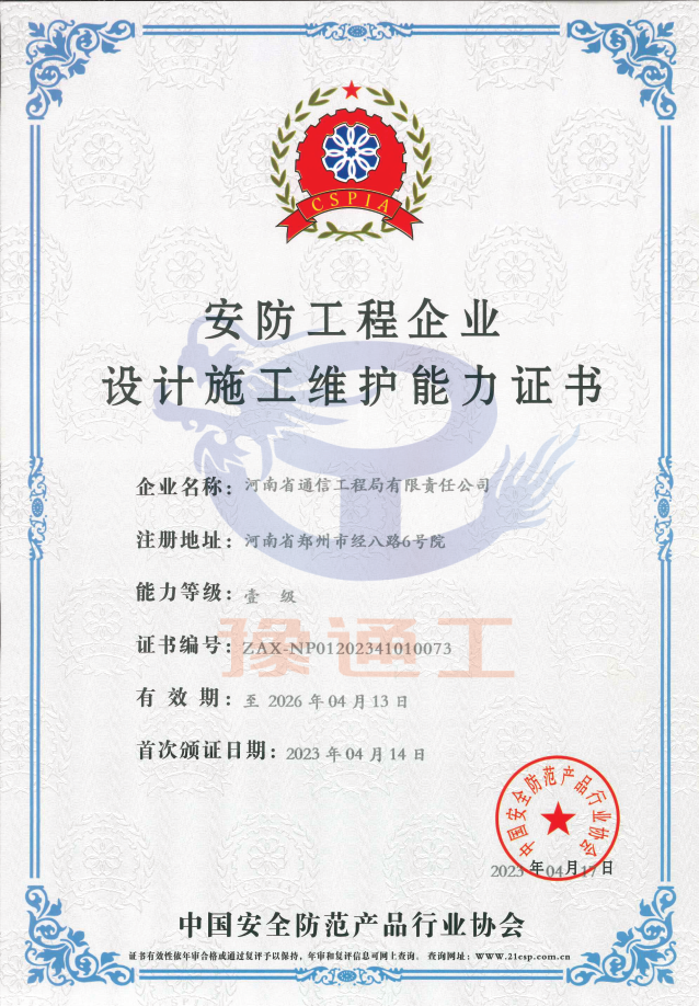 安防工程企業(yè)設(shè)計(jì)施工維護(hù)能力證書