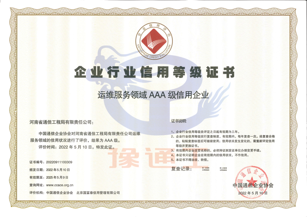 通信運(yùn)維服務(wù)領(lǐng)域信用企業(yè)AAA級